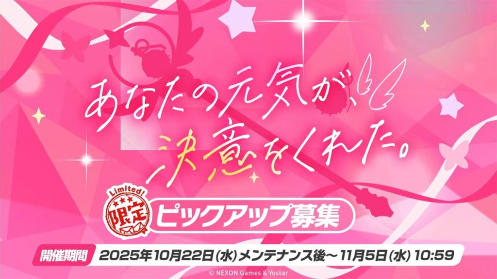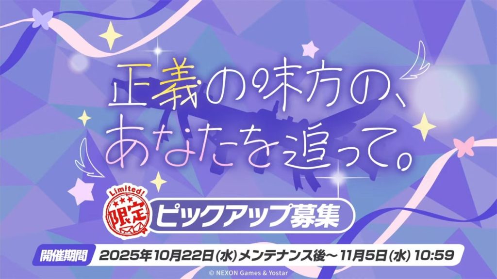 イベントピックアップガチャ開催期間:2025年10月22日メンテナンス後~2025年11月5日10:59