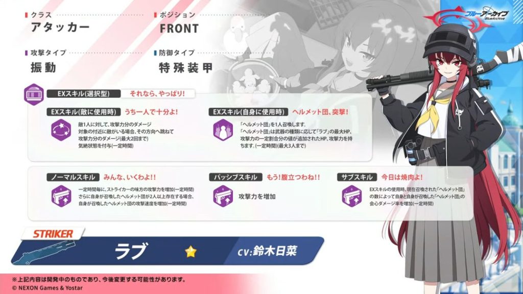 ・ノーマルスキルは、一定時間毎にストライカーの味方の攻撃力を増加&召喚したヘルメット団が二人以上存在時、ヘルメット団の攻撃速度を増加