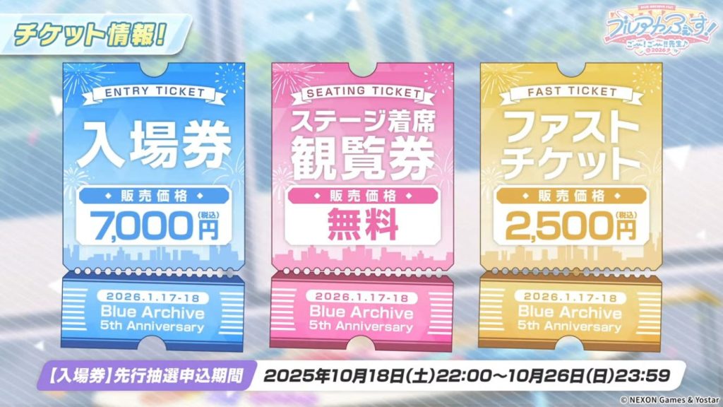 入場券先行抽選申込期間:2025年10月18日22:00~10月26日23:59まで